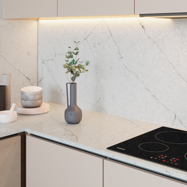 The bark of the birch tree stands out for its uniform whitish background scattered with irregular bluish-grey veins that branch out at its knots. An evocative and unmistakable pattern is created, which we have recreated in this elegant and versatile slab that brings new luminosity to all contexts.